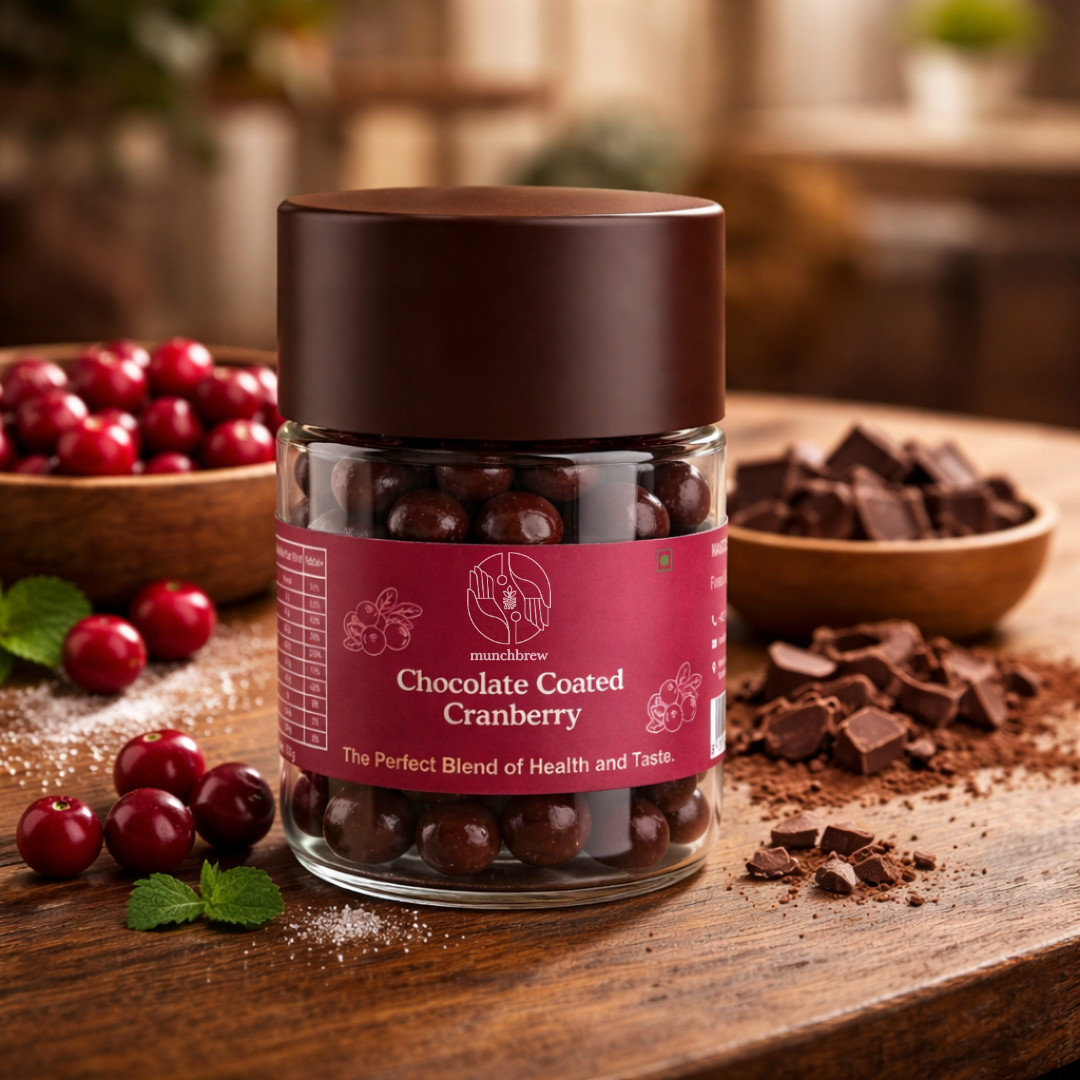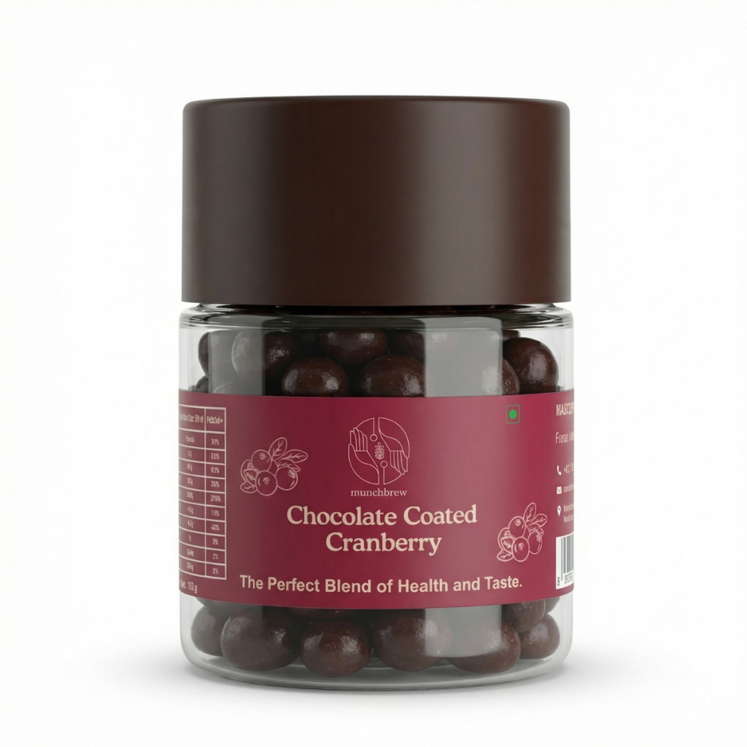 Tangy cranberries dipped in rich chocolate — a perfect mix of flavor and wellness.